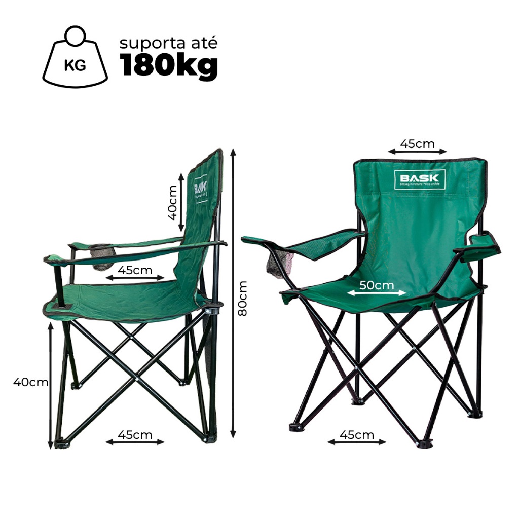 Produto Original com Garantia | Enviamos Hoje Mesmo! Leve conforto e praticidade para suas aventuras ao ar livre com a cadeira portátil dobrável da BASK. Robusta, leve e funcional, ela é ideal para camping, pesca, praia, piqueniques, terraços, quintais e qualquer momento de lazer fora de casa. Projetada para quem busca durabilidade, estabilidade e facilidade no transporte, esta cadeira conta com estrutura em aço reforçado, assento amplo e sistema de abertura rápida. Não requer montagem para mais praticidade em viagens. * Destaques do Produto: - Abertura e fechamento instantâneos, sem necessidade de montagem - Estrutura em aço reforçado com alta capacidade de peso (até 180 kg) - Assento em tecido Oxford 600D: resistente, durável e confortável - Pés com base antiderrapante para mais segurança em diferentes superfícies - Inclui porta-copos lateral para manter sua bebida sempre à mão - Design dobrável e compacto: pesa apenas 2 kg e é fácil de transportar - Acompanha corda elástica de fechamento * Certificações de Qualidade: Produto testado e aprovado pelos institutos SGS e Intertek, com garantia de desempenho, segurança e durabilidade. Produzido em fábrica com certificação internacional de responsabilidade social (BSCI). * Especificações Técnicas: -Tecido: Poliéster 600x300D com revestimento em PE - Estrutura: Tubo de aço com 16mm de diâmetro - Dimensões aberta: 50 x 77,5 x 80 cm - Dimensões fechada: 13 x 13 x 82 cm - Peso suportado: até 180 kg - Peso aproximado: 2 kg * Conteúdo da Embalagem: - 1x Cadeira Dobrável BASK Aproveite cada momento ao ar livre com mais conforto e segurança. Faça seu pedido agora e receba com envio imediato!