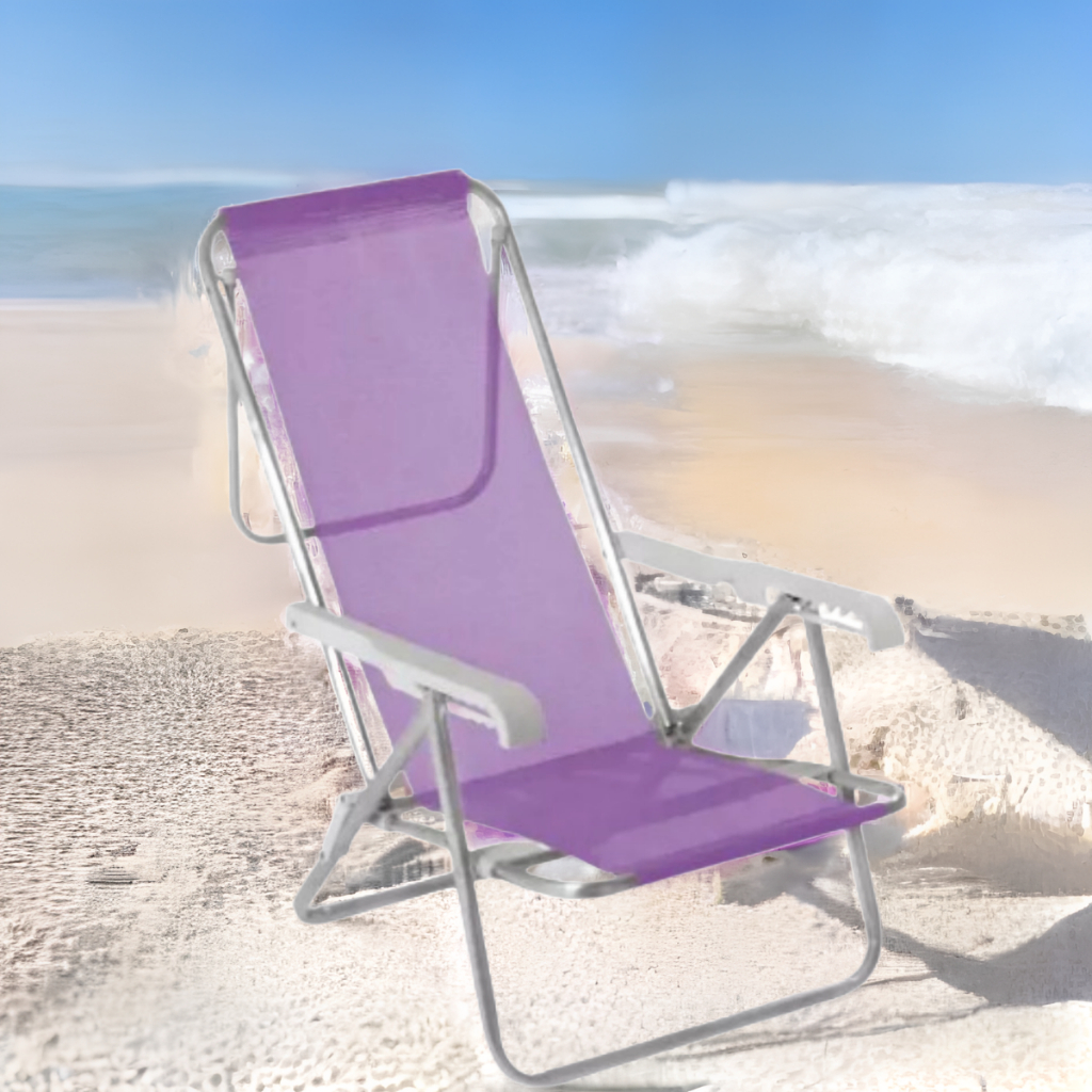 Cadeira Praia Reclinável Alumínio Dobrável 8 Posições 100kg Nova
