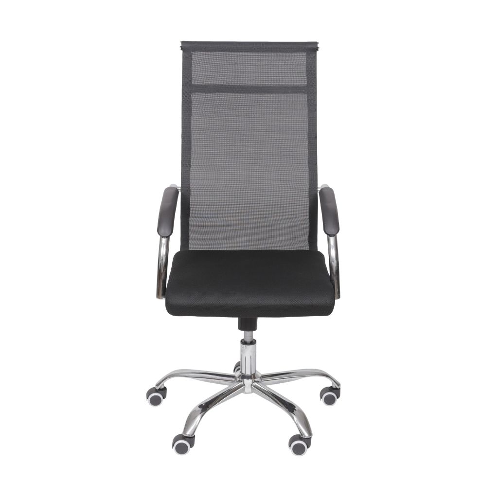 Cadeira Roma Office Escritório Presidente Alta Tela Preta Base Cromada com Rodízio PU Or Design