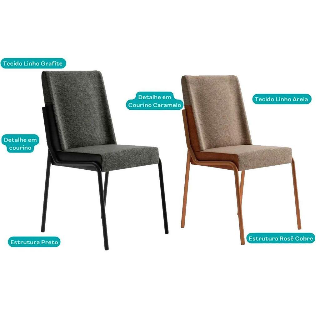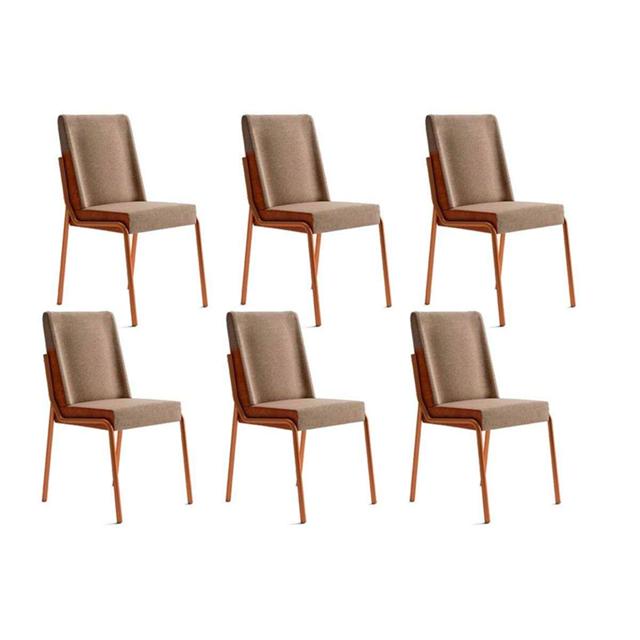 Cadeira Sala de Jantar Hug 1749 Kit 6 Uni Rose/Linho Areia/Courano Caramelo - Carraro