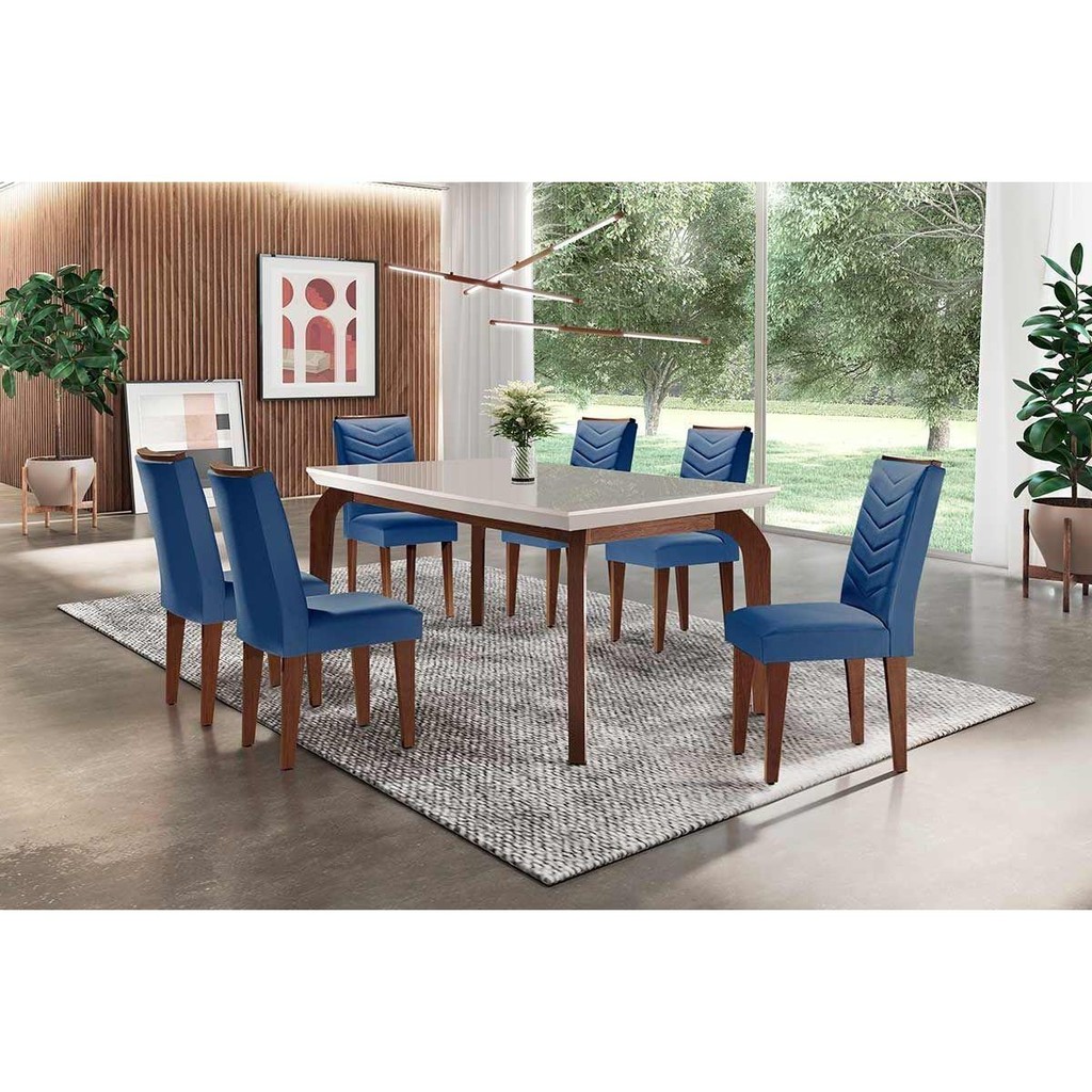 Cadeira Sala de Jantar Londrina Madeira Kit 6 Un Capuccino - Veludo Creme - Rufato