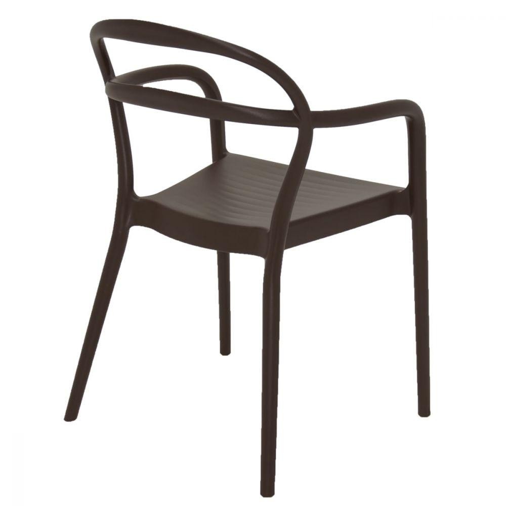 Cadeira Tramontina Sissi Encosto Vazado Com Braços Em Polipropileno E. Fibra De Vidro MarromA Cadeira Tramontina Sissi Encosto Vazado com Braços em Polipropileno e Fibra de Vidro da linha Summa irá oferecer para o seu ambiente um toque de ousadia, com seus traços modernos e linhas que conversam entre si. Uma peça impactante e cheia de estilo para compor a sua decoração. A Sissi é uma cadeira monobloco empilhável, leve, resistente e com um design diferenciado, perfeita para a sua casa ou escritório. Especificações Técnicas - Linha ou Coleção: Sissi - Comprimento: 58 Cm - Largura: 51,5 Cm - Altura: 79 Cm - Material: Polipropileno e Fibra de vidro - Material das Pernas: Polipropileno e Fibra de vidro - Cor: Marrom - Acabamento: Fosco - Estofada: Não - Altura do chão até o assento: 45,5 Cm - Suporta até (kg): 182 Kg - Empilhável: Sim - Braço: Sim - Altura do chão até o braço: 64,5 Cm - Tipo de Assento: Fixo - Antiderrapante: Sim - Necessita Montagem: Não - Peso Máximo Recomendável: 182 kg - Produzido em Polipropileno e Fibra de Vidro - Empilhável até: 8 peças - Garantia do fabricante: 12 Meses para defeitos de fabricação - Marca: Tramontina - Cômodo Indicado: Cozinhas - Peso: 3,80 Kg - Certificado: Produto certificado de acordo com a Portaria do Inmetro n 342/2014 - Recomendações de Uso: Não subir no assento. Respeite o limite máximo de peso. Transporte sempre com cuidado. Retire o produto do ambiente sempre que for higienizar o piso; alguns materiais de limpeza podem causar danos em contato com a peça. Prolongue a vida útil do produto mantendo-o guardado quando não estiver em uso. Longas exposições ao sol podem provocar manchas ou perda da cor do produto. *Imagem meramente ilustrativa