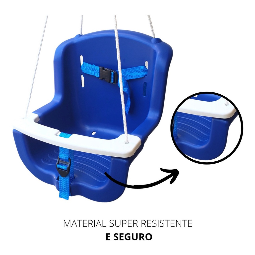 Balanço ideal para as crianças, bem seguro sem cantos que possam machucar. Material resistente, durável e antitóxico, para ambientes externos e internos. Recomendado para crianças de 18 meses a 6 anos. Cores disponíveis: -Rosa -Azul Itens Inclusos: - Cadeirinha Balanço; - Corda para instalação - 6 metros - Cinto de Segurança reforçado em nylon Especificações Técnicas: - Medidas: 0,28m comp. X 0,35m larg. X 0,35m alt. - Indicado para crianças de 18 meses até 06 anos. - Suporta até 30 Kg. Obs: FAVOR SELECIONAR A COR DESEJADA ANTES DA COMPRA, APÓS A COMPRA NÃO CONSEGUIREMOS ALTERAR A COR QUE SERÁ ENVIADA. IMPORTANTE - Ao instalar verifique antes se esta seguro para evitar acidentes - Não recomenda-se instalar em lugares altos.