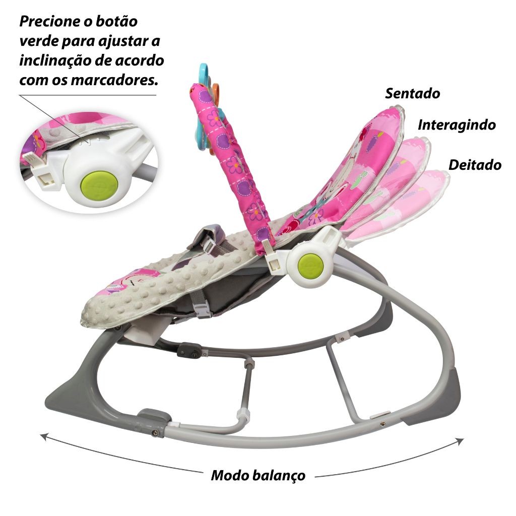 Cadeirinha De Descanso Vibratória Para Bebe Musical Balanço Com Mobile Rosa - Kababy