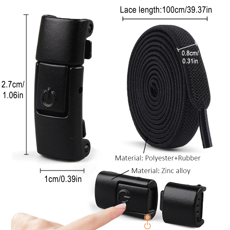 Características: Comprimento: 100 cm Largura: 0,8 cm Espessura: 0,2 cm Material: Fecho de metal durável combinado com cadarços elásticos Conteúdo da embalagem: 2 cadarços (1 par) e 2 fechos Uso versátil: Ideal para esportes, montanhismo e viagens. Disponível em uma variedade de cores, permitindo que você escolha uma opção personalizada que complemente seus sapatos.