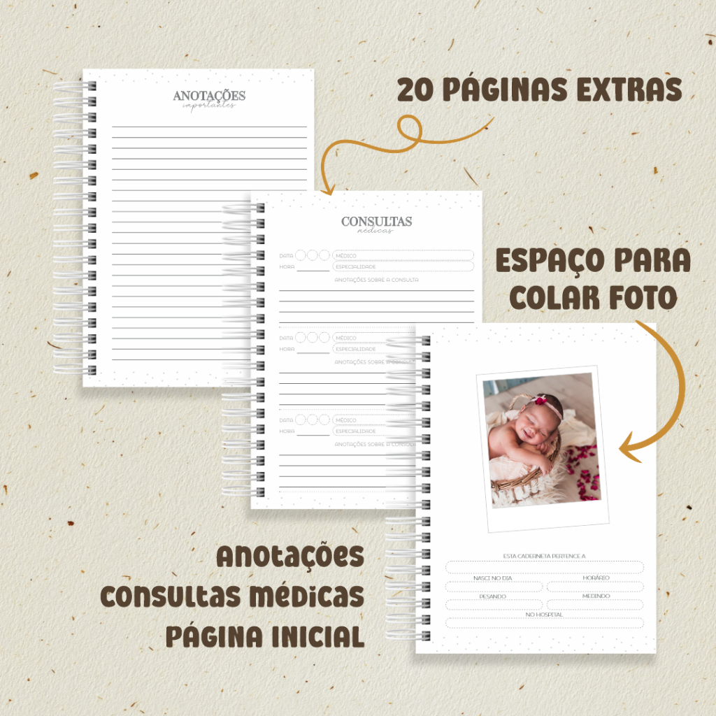 APÓS A COMPRA, INFORMAR O NOME PARA PERSONALIZAÇÃO DA CAPA ATRAVÉS DO CHAT. ⚠️⚠️⚠️ ATENÇÃO AO PRAZO DE ENVIO: ⚠️⚠️⚠️ NOSSOS PRODUTOS POSSUEM PRAZO DE PRODUÇÃO DE 5 DIAS ÚTEIS. A CAPA É PERSONALIZADA COM A INICIAL E O NOME DO BEBÊ. ESSAS SÃO AS ÚNICAS ALTERAÇÕES QUE SÃO FEITAS. 📘CADERNETA DE SAÚDE DO BEBÊ 💙 A Caderneta de Saúde é um dos documentos mais importantes da vida do seu bebê. Ela estará presente desde o nascimento, acompanhando cada fase do desenvolvimento com informações essenciais sobre saúde, amamentação, alimentação, além de gráficos de crescimento e peso. 📈🍼🥣 Pensando na importância desse material, desenvolvemos a caderneta com todo cuidado e qualidade. E para deixá-la ainda mais especial, você pode personalizar a capa com o nome do seu bebê — um toque único e cheio de carinho! 📌ESPECIFICAÇÕES: - Capa dura laminada - Tamanho: 15,5 x 21,5 cm - Encadernação com arame branco duplo - Bolsinho plástico interno CONTEÚDO: -Caderneta de Saúde COMPLETA e ATUALIZADA conforme o Ministério da Saúde - Página inicial para dados do nascimento com espaço para foto -Extras: 10 páginas para registro de consultas + 10 páginas para anotações sobre o bebê Importante: - Pode haver variação nas cores entre o produto impresso e a visualização em telas (monitores, celulares, etc.). - As capas são fixas: não realizamos alterações em cores, fontes ou elementos gráficos.