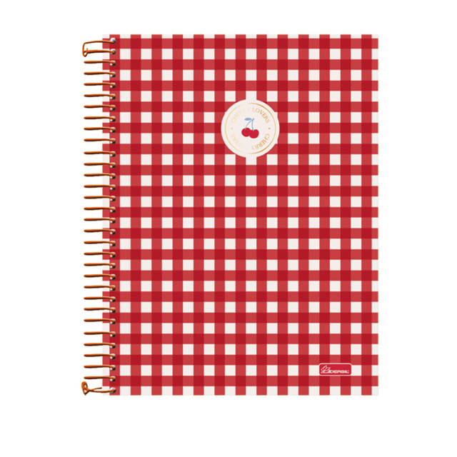 Caderno 15 Matérias Universitário Cherry Lovers 240 Folhas - CADERSIL Capa:Xadrez