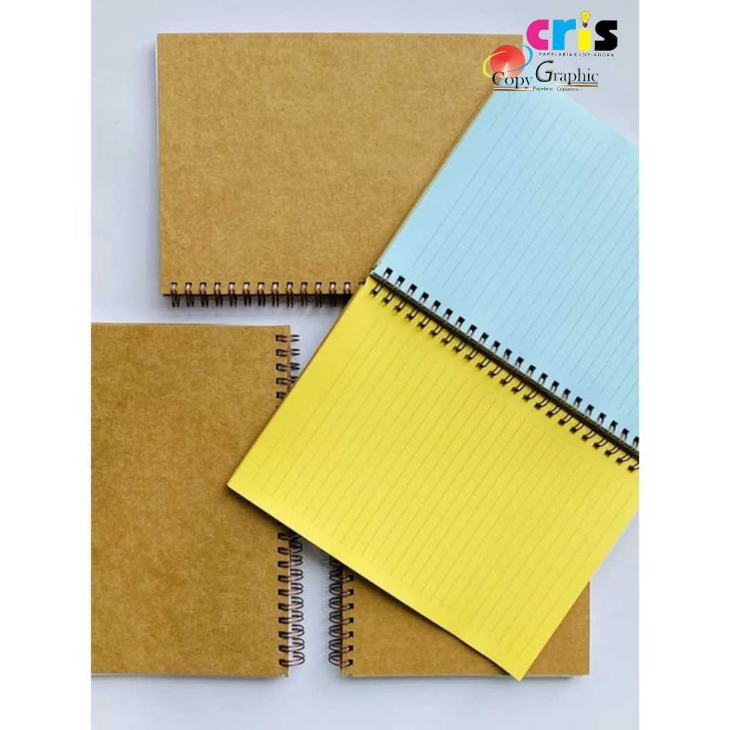 Caderno A4 - com Miolo Colorido - Capa Kraft 420g - Valor Unitário - Caderno Sem Pauta Com Miolo Colorido (Sem Linha) - Caderno Com Pauta Com Miolo Colorido (Com Linha) - Encadernação Wire-o - Tamanhos A4 (210 x 297 mm) - 100 Folhas (25Fls Verde, 25Fls Amarelo, 25Fls Rosa, 25Fls Azul)