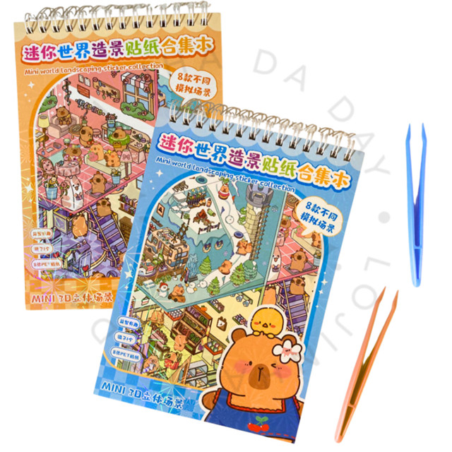 Caderno Adesivo Cenário 3D 8 em 1 com Pinça Brinquedo Criativo Relaxante Kawaii para Montar Ambiente