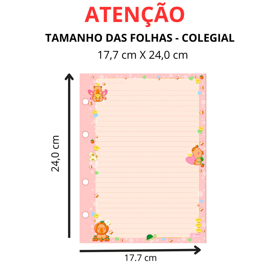 CADERNO ARGOLADO CAPY CLUB TILIBRA COM 80 FOLHAS Pedidos feitos até as 11:00 Serão enviados no mesmo dia !!!DESCRIÇÃO:•Formato: 177mm x 240mm •Gramatura: 63 g/m²•Número de folhas: 80 folhasESPECIFICAÇÕES:•Capa: com detalhe metalizado e dura•Divisórias: decoradas•Ferragem: Sim•Folhas: pautadas decoradas•Parte interna da capa decorada: Sim•Produto certificado: FSCPossui formato compacto, é leve e bastante funcional. Vem com capa dura com detalhe metalizado e parte interna decorada, divisórias, folha adesiva, folhas pautadas e bolsa plástica para guardar trabalhos e anotações.