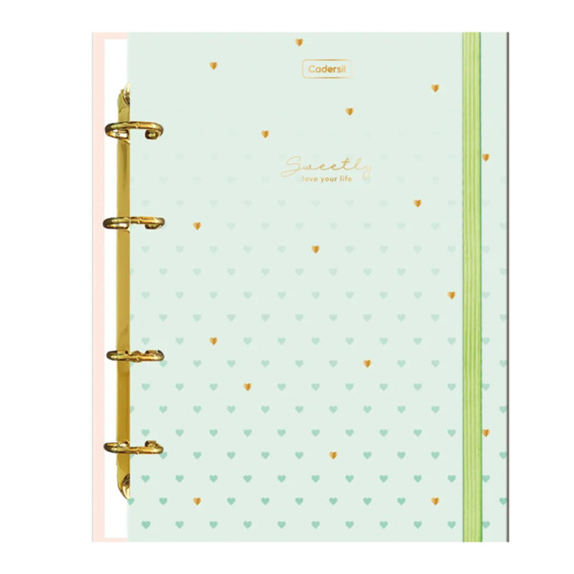 FICHARIO ARGOLADO COLEGIAL CARTONADO CAPA DURA 80 FOLHAS SWEETLY - CADERSILPedidos feitos até às 11:00 horas (Seg à sex) são enviados no mesmo dia!!!DESCRIÇÃO: • Modelo: Colegial • Medida: 24 x 18CM • Capa dura estampada • Bolsa envelope • Cartela de adesivos • 06 Divisorias tons pasteis • 04 Argolas retrátil • 25 Fichas Pautadas ESPECIFICAÇÕES: • Folhas: - Folha Com Pauta colorida - Medindo 24,0 x 17,7cm - Quantidade: 80fls - Gramatura: 63g/m² - Argola Dourada Possui formato compacto, é leve e bastante funcional. Vem com capa dura com detalhe metalizado e parte interna decorada, divisórias, folha adesiva, folhas pautadas e bolsa plástica para guardar trabalhos e anotações, tem alta resistência e durabilidade. Ideal para estimular a organização dos estudos diários e alcançar as metas e objetivos sem perder a motivação. Cheio de versatilidade ao inserir ou retirar folhas, pois suas duas argolas articuladas abrem, possibilitando esta ação. Útil e fofo, e com tamanho compacto, foi feito para arrasar! Pronto para escola ou faculdade.