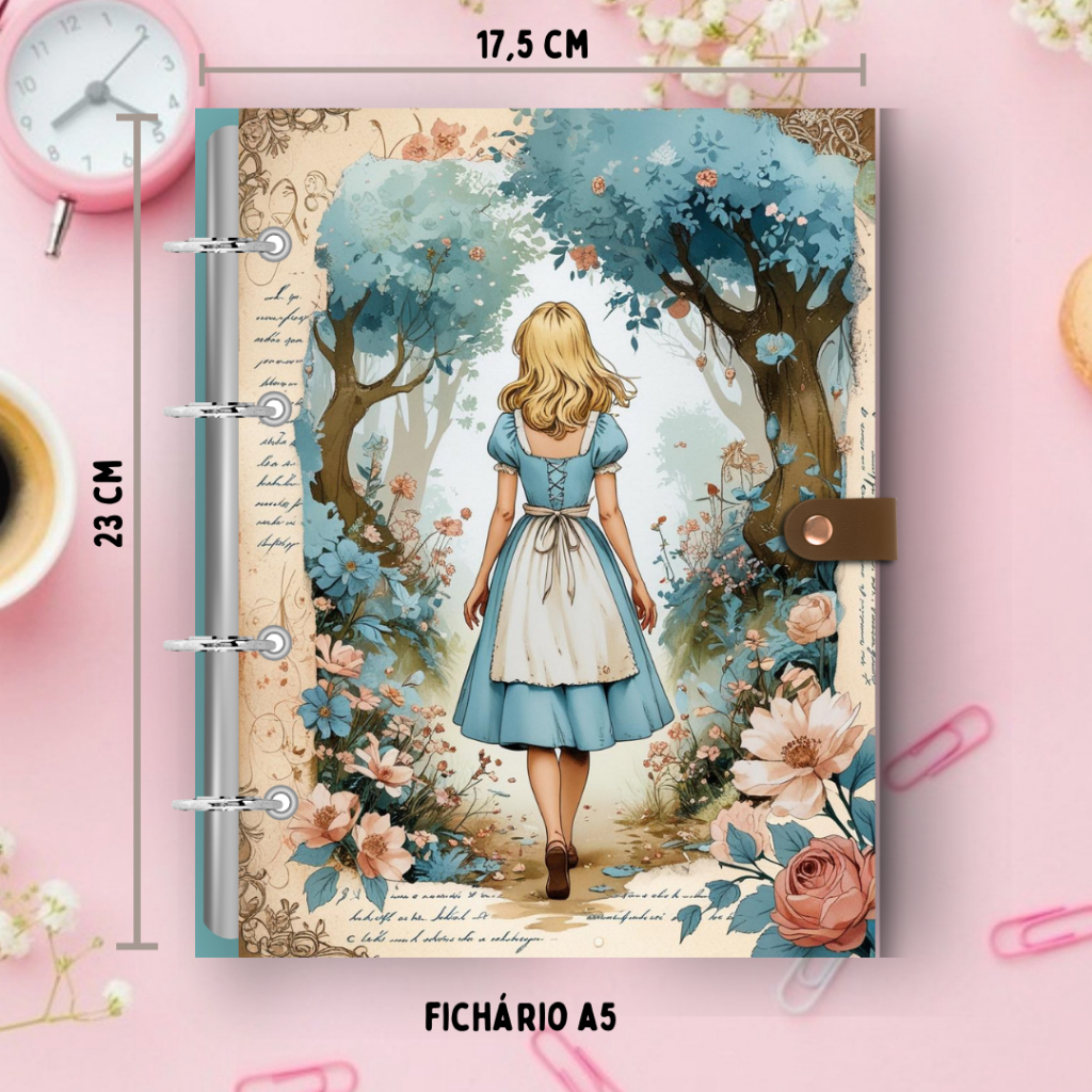 CADERNO ARGOLADO FICHÁRIO ALICE NO PAÍS DAS MARAVILHAS