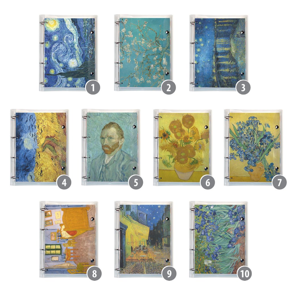 Caderno argolado fichário universitário cristal transparente van gogh 250 folhas + divisórias