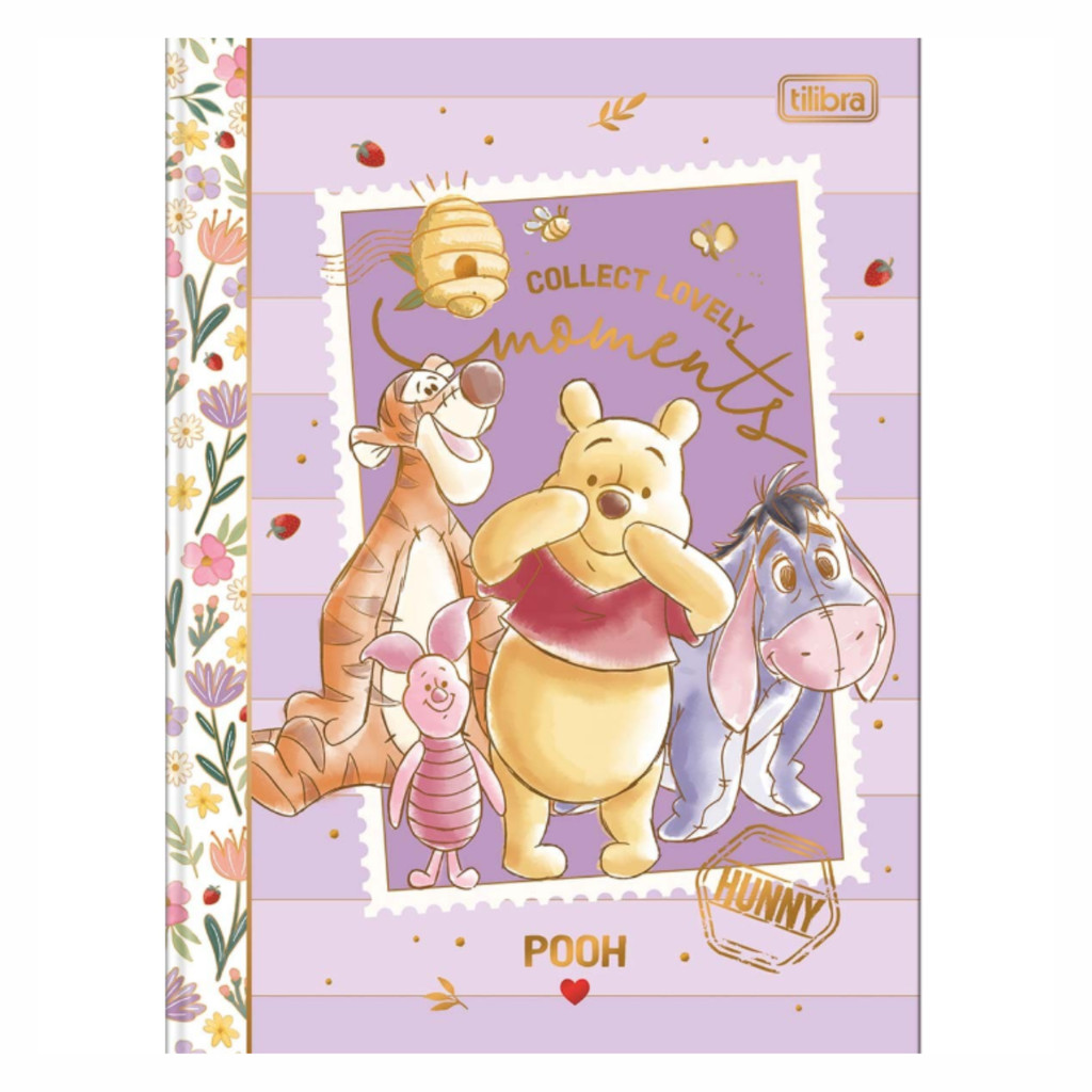 Caderno Brochura Pooh Capa Dura Colegial 80 Folhas Ilustradas parte interna decorada