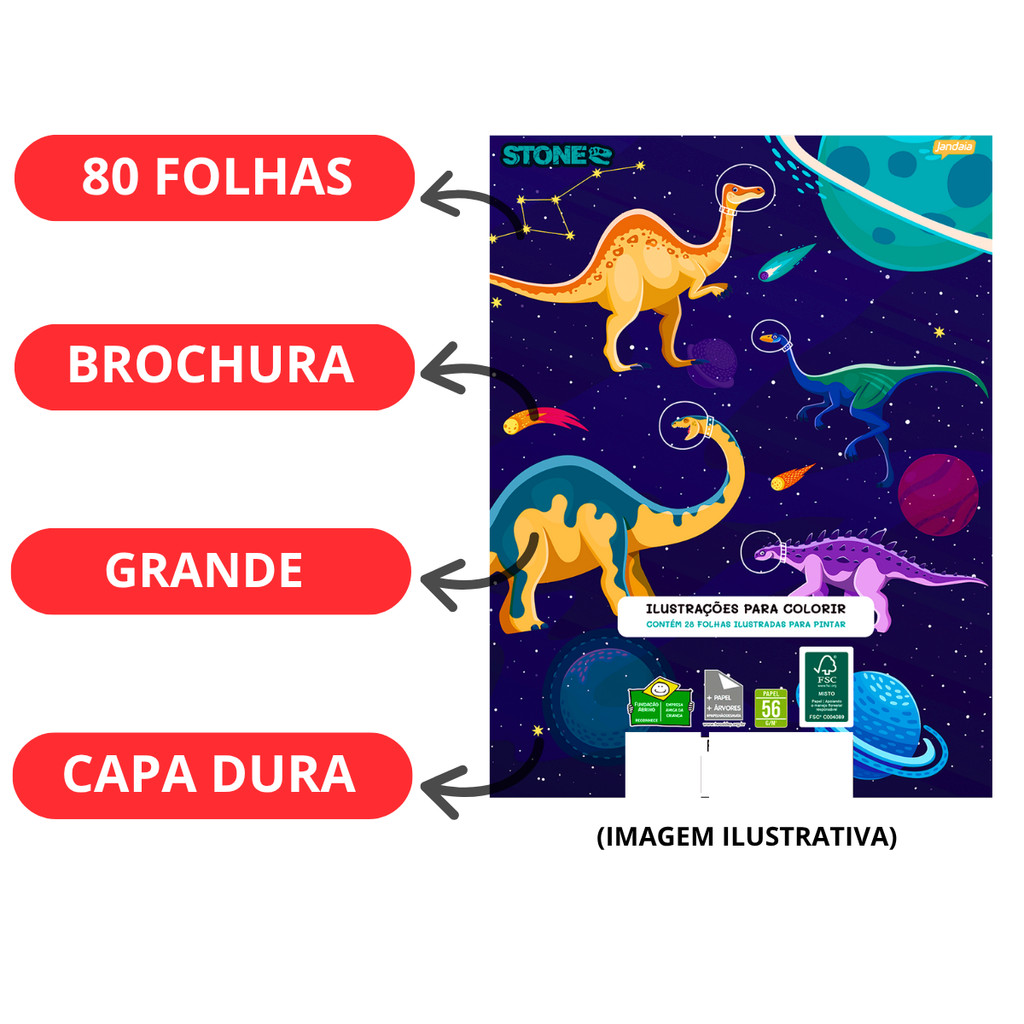 Caderno Brochura Universitário Stone 80 Folhas- Jandaia CAPA:Dino Espaço