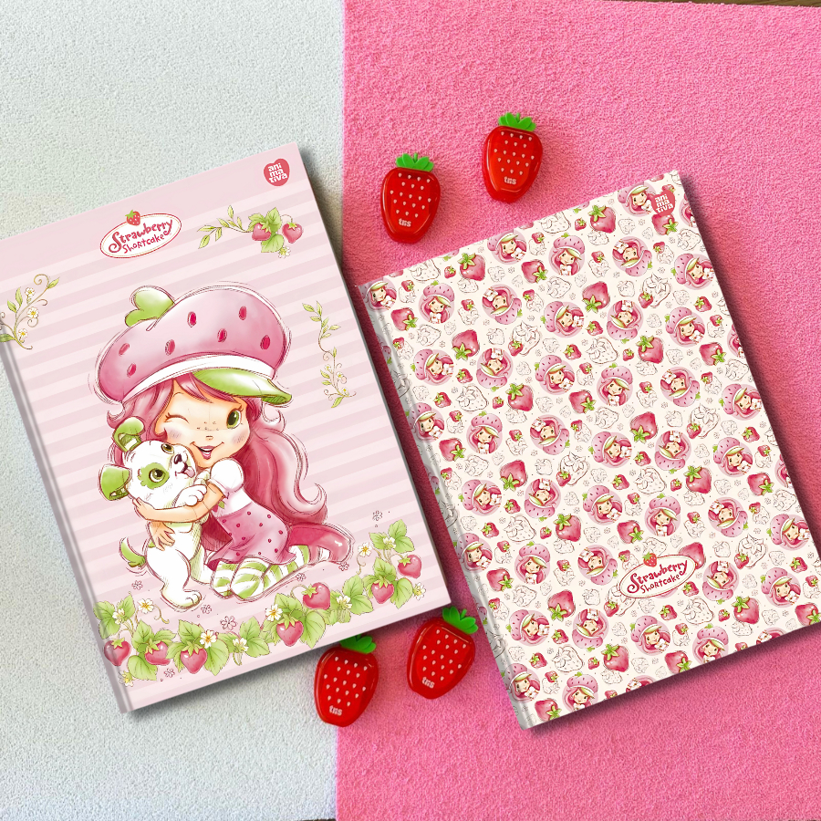 Caderno Colegial Costurado Capa Dura Moranguinho 160 folhas Strawberry Shortcake Morango Animativa