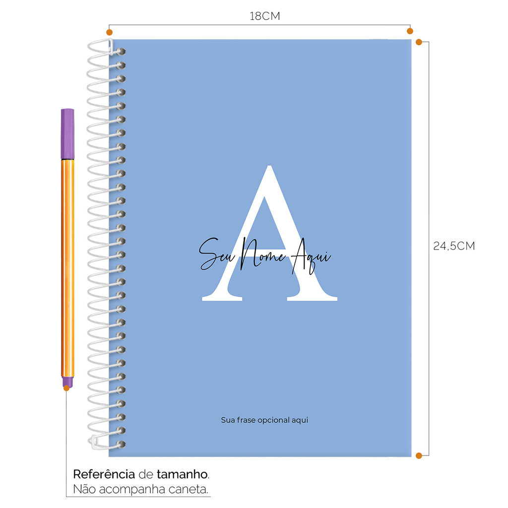 Caderno colegial personalizado 15 matérias (240 folhas). >>> Esse anúncio é possível personalizar com o seu nome e frase opcional <<< >>> Não alteramos cor, fonte ou elementos gráficos da estampa deste anúncio <<< >>> Não é possível personalizar com a sua arte, logotipo ou foto <<< >>> Se desejar personalizar com a sua arte, logotipo ou foto, temos um anúncio específico <<< >>> Após a confirmação da compra e pagamento você deverá nos informar o nome e a frase para personalização através das observações ou nas mensagens (chat) do seu pedido. Caso não recebamos o seu retorno até 24h da data limite de envio, despacharemos o produto sem a personalização. <<< >>> ESPECIFICAÇÕES DO PRODUTO - Tamanho: 18cm de largura por 24,5cm de comprimento. - Capa dura com laminação para proteção. - Encadernado com espiral de arame revestido. - Quantidade de matérias: 15. - Quantidade de folhas: 240 folhas. - Quantidade de páginas: 480 páginas. - Páginas internas (miolo) fabricadas e impressas em papel sulfite (offset) 56g branco. O caderno colegial personalizado da ISCOOL vendido pela Impressos Store é indicado para quem busca um modelo criativo, moderno e exclusivo para o dia a dia nos estudos, na escola, no cursinho, na faculdade, na universidade, no EAD e também nos projetos de pós-graduação. As folhas são perfeitas para escrever com caneta e lápis. Na primeira página, você poderá inserir todos os dados pessoais e sociais! Logo após, há uma tabela para preenchimento dos horários e programação de cada aula, facilitando assim o seu planejamento da semana, e ainda possui um check-list para que não se esqueça de nada. No verso da página acompanha o calendário completo. No divisor de matérias você pode escrever informações como: nome da matéria, horário, professor, sala, escola/faculdade e o curso. Também possui campos para anotar seus trabalhos, provas, datas, notas e os temas. Em todas as demais páginas pautadas você pode indicar a data e o dia da semana. O melhor de tudo é que com a Impressos Store você pode dar personalidade e exclusividade para seu caderno! Produzimos cadernos, agendas e produtos de papelaria há mais de 28 anos! Garantimos a qualidade e a excelência do seu produto. >>> INFORMAÇÕES DIVERSAS - Leia com atenção a descrição do produto. - Caso tenha dúvidas relacionadas ao produto, antes da compra faça quantas perguntas achar necessário. - Confira seus dados para entrega do produto (endereço completo, telefone para contato, etc.). Não nos responsabilizamos por endereços e locais de entrega incorretos ou por dados incompletos. - Após a compra, se sentir a necessidade de conversar conosco, nos acione através do chat (mensagens). - Valores sujeitos à alterações sem aviso prévio, garantimos o valor somente após compra realizada.