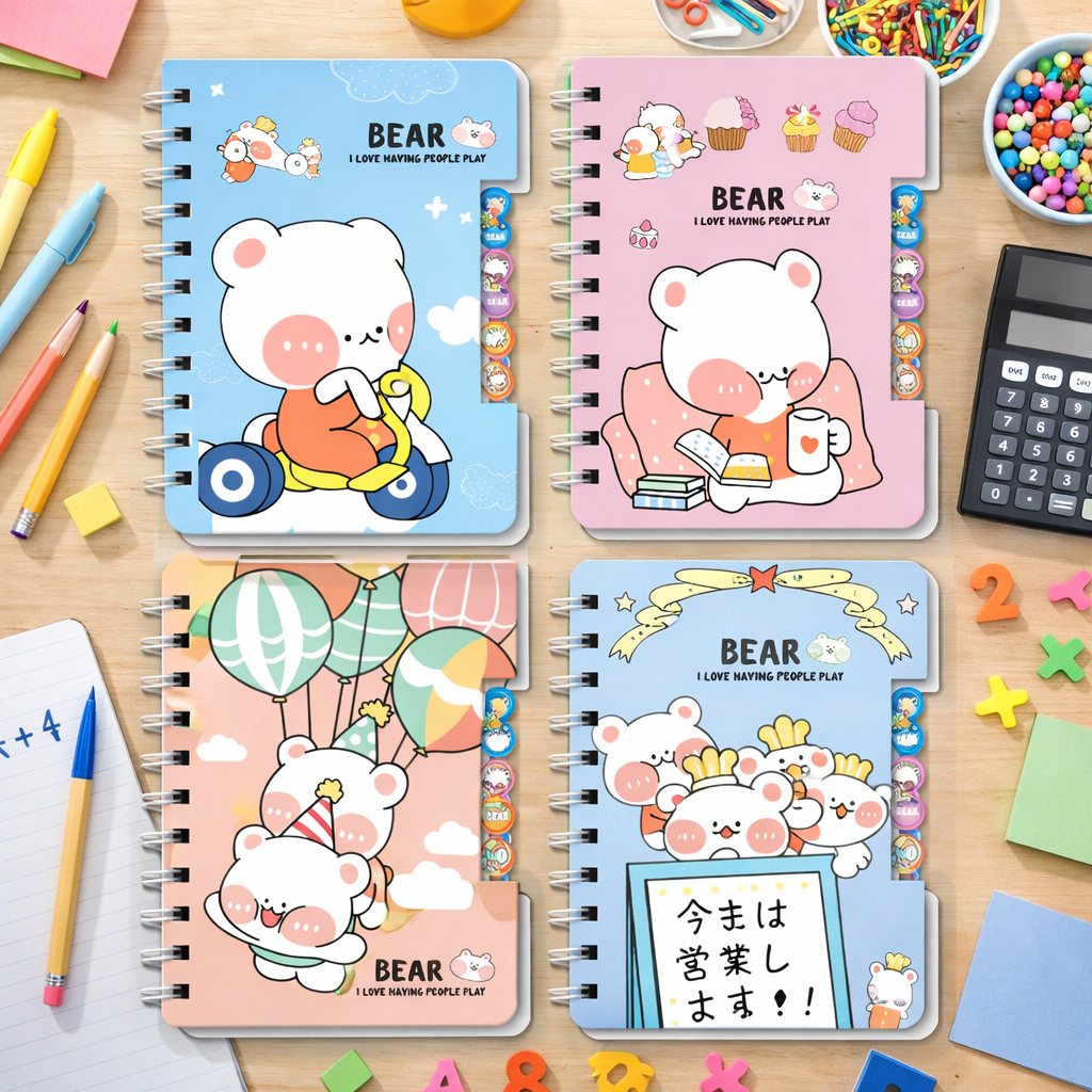 Caderno Kawaii Espiral com Divisórias – Super Fofo! Deixe seus estudos e anotações muito mais divertidos com esses lindo caderno! 💖 Perfeito para escola, trabalho ou para quem ama papelaria fofa. ✨ Destaques do produto: Capa dura com estampa Espiral resistente (abre 360°) Design colorido e delicado (várias cores disponíveis) Ideal para anotações, diário, planejamento e estudos Material: Papel + capa dura Quantidade: 1 unidade MODELO ESCOLHIDO NA VARIAÇÃO- SORTIDOS. 🎁 Ótima opção de presente! 💡 Garanta já o seu e deixe sua rotina mais fofa e organizada!