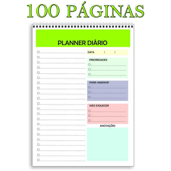 Caderno de Anotações Planner Diário Planner Semanal 100 Páginas