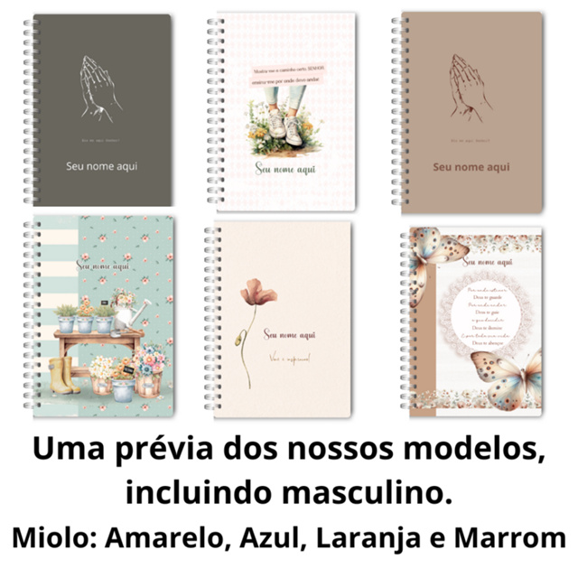 Caderno de Anotações Versículos - Você escolhe e monta sua capa e miolo - Miolo Azul, Amarelo, Laranja e Marrom