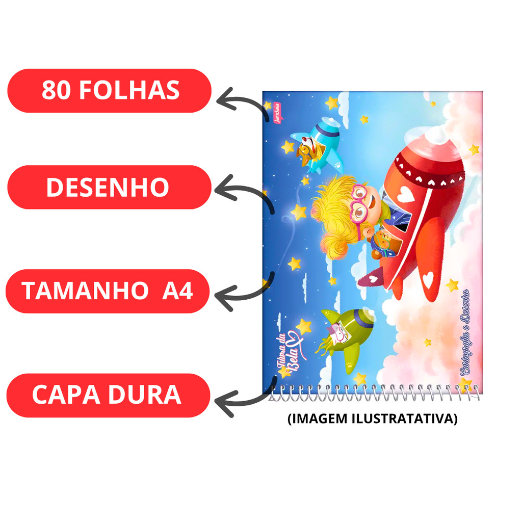 CADERNO DE DESENHO TURMA DA BELA 80 FOLHAS – SEU DESENHO MAIS ANIMADO Pedidos até às 12h (seg a sex) = Envio no mesmo dia! DESCRIÇÃO: Formato: 20x27,5cm (ideal para atividade de artes) Capa dura: proteção e durabilidade 80 folhas: mais espaço para usar a criatividade para desenhar. Acabamento premium: UV reserva e laminação fosca COMPOSIÇÃO: Papel de alta qualidade Arame resistente POR QUE ESCOLHER ESTE CADERNO? Design exclusivo: Turma da Bela, a saga mais emocionante! Qualidade: JANDAIA, a marca que você confia Organização: 80 folhas para manter tudo em ordem Durabilidade: Capa dura e acabamento resistente