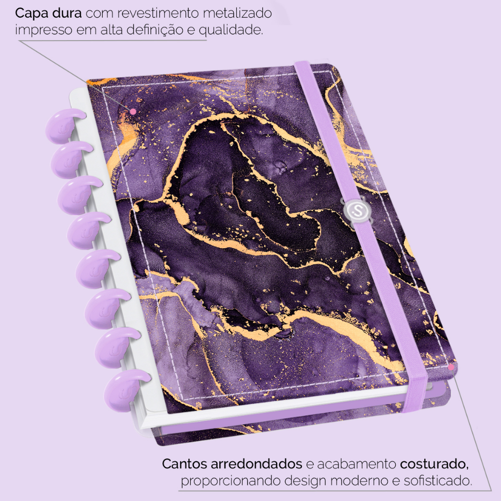 Caderno De Disco Inteligente Iscool Capa Dura 80 Folhas Mármore Roxo
