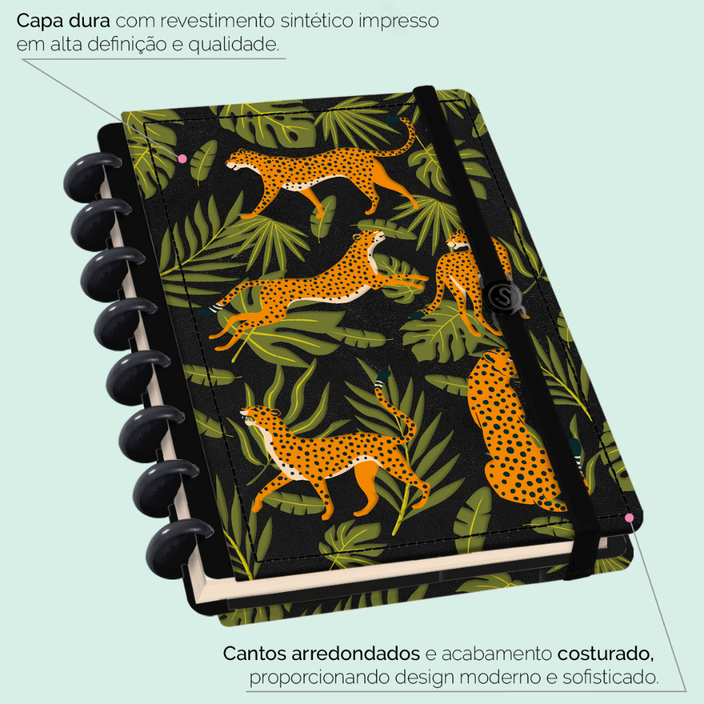 Caderno De Disco Inteligente Iscool Capa Dura 80 Folhas Tropical Onças Preto