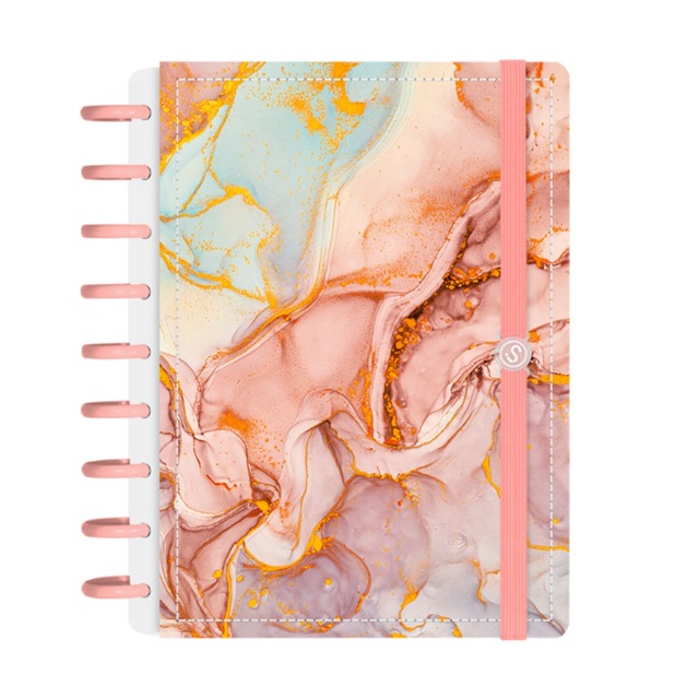 Caderno De Disco + Iscool Inteligente 140 Fls Capa Dura Mármore Cores