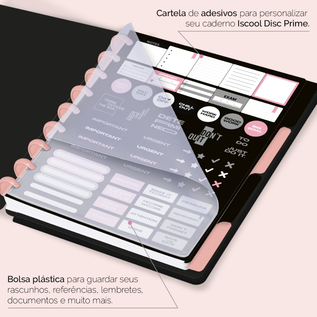 Caderno de discos ISCOOL DISC PRIME (capa dura 80 folhas/160 páginas) com sistema de folhas e discos reposicionáveis. >>> Esse anúncio/produto não é possível personalizar. >>> Não alteramos cor, fonte ou elementos gráficos da estampa deste anúncio. >>> ESPECIFICAÇÕES DO PRODUTO <<< - Você pode escolher entre os tamanhos M (17 cm x 23 cm) ou G (20 cm x 27,5 cm). - Capa dura com impressão digital de alta definição. - Elástico para fechamento da capa do caderno. - Bolsa plástica para guardar documentos e anotações. - Página com instruções de como utilizar seu caderno. - Cartela de adesivos divertidos. - Encadernado com 9 ou 11 discos M de 23mm em polímero de nylon e/ou policarbonato coloridos, fabricados no Brasil. - 4 ou 6 divisores laminados (frente e verso) em papel 250g. - Quantidade de folhas: 80 folhas, sendo 60 folhas pautadas decoradas e 20 folhas em branco. - Quantidade de páginas: 160 páginas. - Páginas internas em papel sulfite (offset) 90g branco. ISCOOL DISC PRIME é a escolha perfeita para quem busca um modelo moderno, criativo, prático, versátil e original, com qualidade e ótimo custo-benefício. Um caderno totalmente customizável, no qual os elementos são reposicionáveis. Você pode montá-lo como preferir, deixando rolar solta toda sua criatividade. A capa é dura com impressão digital de alta definição, acompanha lindas divisórias que você pode colocar em qualquer local do caderno, funcionando como o guia perfeito para sua organização. O miolo conta com 60 folhas pautadas decoradas em papel sulfite 90g, (aquele papel mais “grossinho”) para que você use e abuse das suas canetas especiais e 20 folhas em branco, ideais para explorar seu lado mais criativo ou até imprimir nelas. Com furos no formato de “cogumelo”, você poderá dar um “up” em seu caderno com nossos refis, além de ser compatível com outros fabricantes de cadernos de discos. Os nossos discos são fabricados em polímero de nylon e/ou policarbonato, podem ser substituídos, proporcionando imensa variedade na combinação das cores, qualidade no acabamento e eficácia no encaixe das capas, folhas e acessórios. Além de tudo isso, o ISCOOL DISC PRIME, conta com detalhezinhos que fazem toda diferença: elástico para fechamento da capa, muito mais estilo e privacidade para suas anotações; bolsa plástica para guardar seus rascunhos, referências, lembretes, documentos e uma cartela de adesivos incríveis, para que você possa personalizar seu caderno do seu jeitinho! Afinal, com o ISCOOL DISC PRIME, o legal é ser criativo, porque inteligente é você! Produzimos cadernos, agendas e produtos de papelaria há mais de 28 anos! Garantimos a qualidade e a excelência do seu produto. >>> INFORMAÇÕES DIVERSAS - Leia com atenção a descrição do produto. - Caso tenha dúvidas relacionadas ao produto, antes da compra faça quantas perguntas achar necessário. - Confira seus dados para entrega do produto (endereço completo, telefone para contato, etc.). Não nos responsabilizamos por endereços e locais de entrega incorretos ou por dados incompletos. - Após a compra, se sentir a necessidade de conversar conosco, nos acione através do chat (mensagens). - Valores sujeitos à alterações sem aviso prévio, garantimos o valor somente após compra realizada.