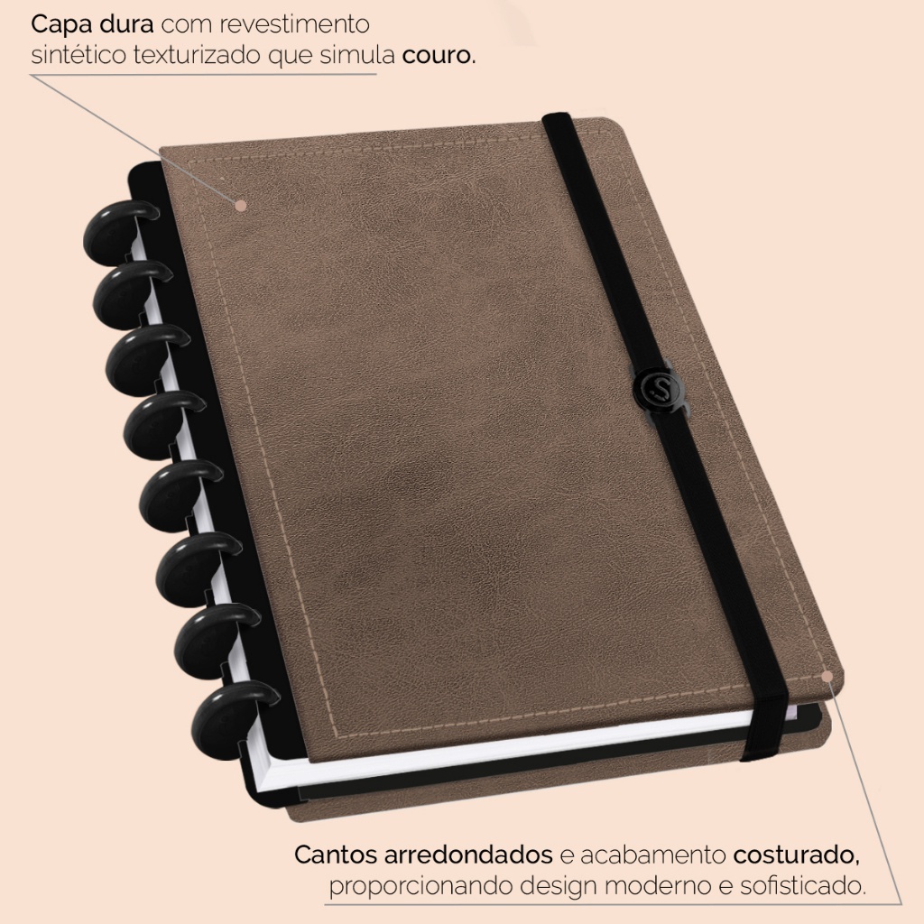 Caderno De Disco Iscool Inteligente Capa Dura 80 Folhas Solid Touch Couro Marrom