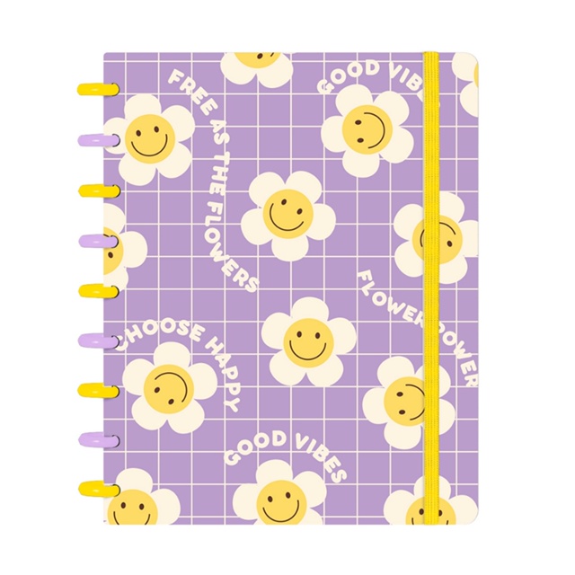 Caderno De Disco Iscool Inteligente Médio 80 Folhas Retro Good Vibes Flores Lilás