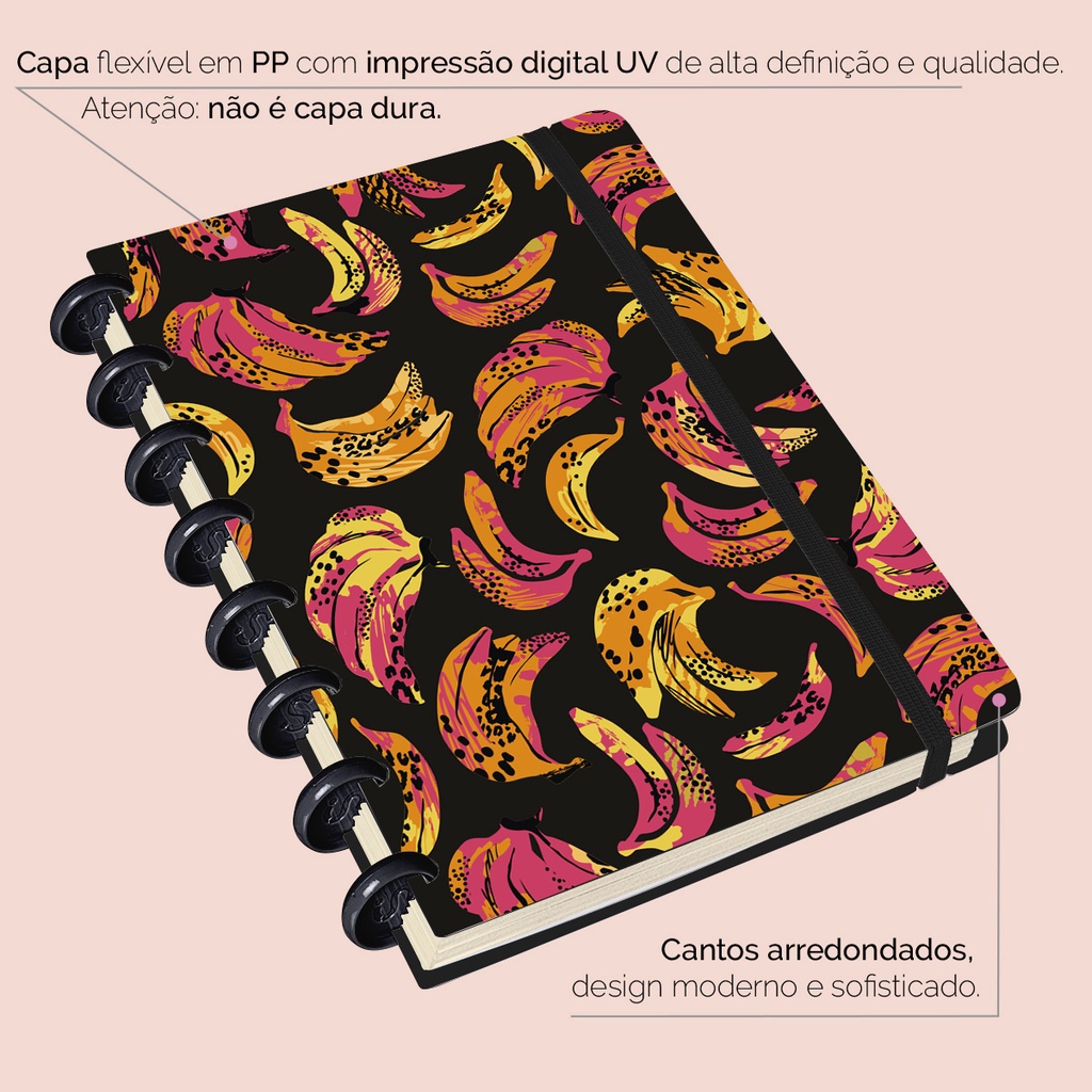 Caderno De Disco Iscool Inteligente Pequeno 80 Folhas Tropical Bananas Preto