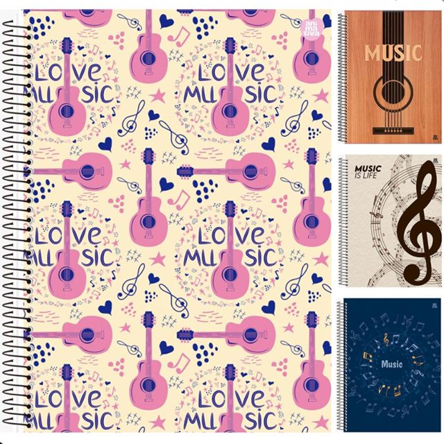 Caderno de Música Universitarios 80 Folhas Capa Dura 1 Materia Grande C/Pautas Escolar São Domingos
