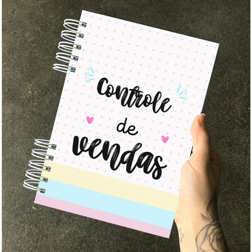 Caderno de controle de Vendas a Prazo Quantidade de folhas Opções com: 100 folhas ( 200 páginas) 160 folhas ( 320 páginas) 200 folhas ( 400 páginas) -Capa dura -Encadernação Wire-o -Tamanho 16x22 - Calendário Atualizado -1 página de dados (papel 90 g) - 12 páginas de anotações (papel 75g) IMPRESSÃO FRENTE E VERSO Páginas impressas frente e verso Produto feito de forma artesanal. COM AMOR!!!