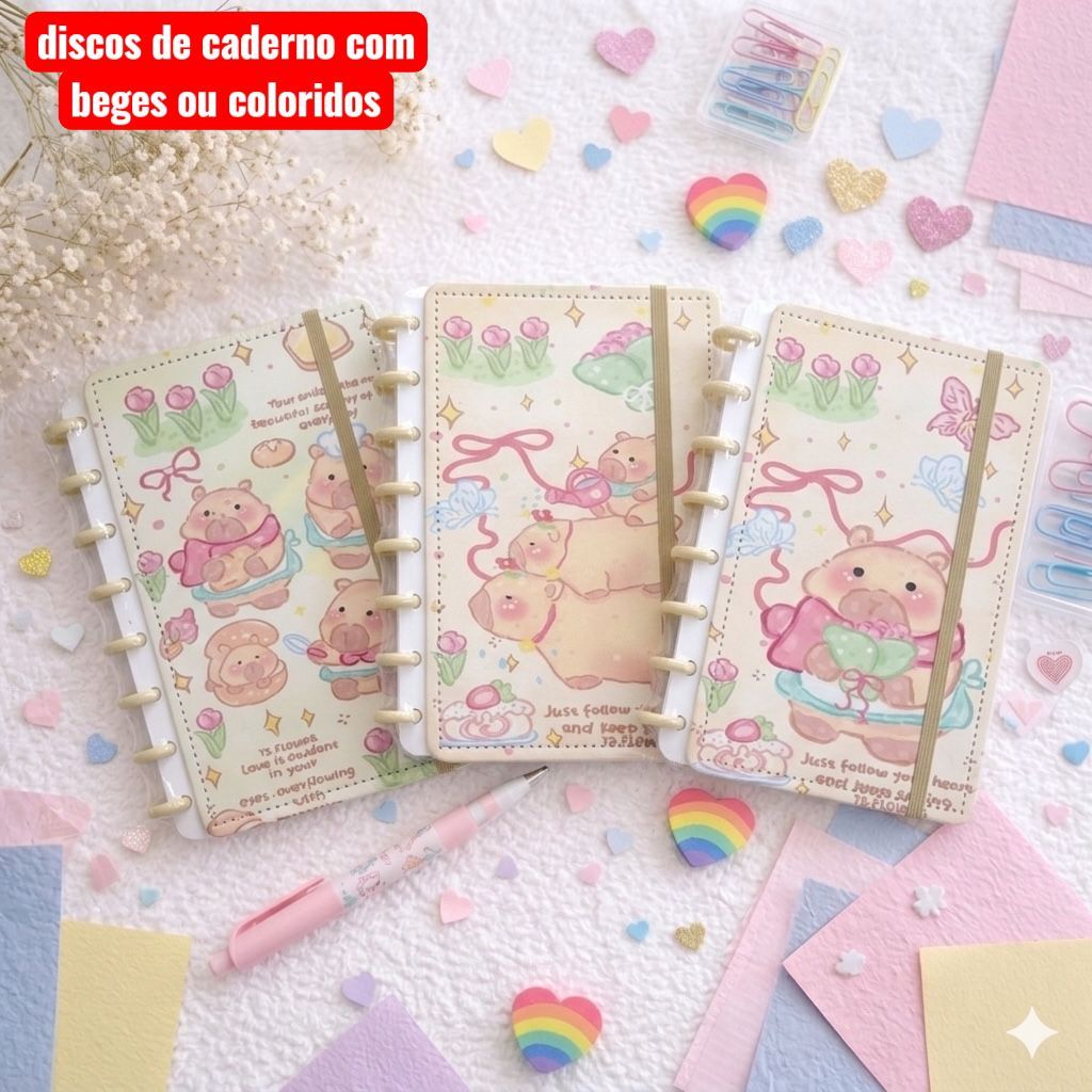 Caderno Design-Capivara Inteligente 8/10 Discos A5/B5 Escolar/Escritório/Papelaria 80 Folhas Removível