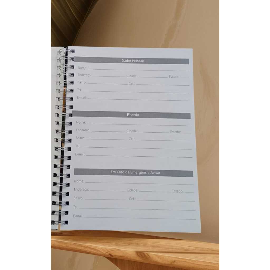Caderno capa Dura plastificada Um caderno capa dura personalizado que combina estilo e funcionalidade. Uma capa resistente pode ser personalizada com designs exclusivos, núcleos vibrantes ou padrões criativos. Inclui folhas pautadas de alta qualidade para uma escrita suave e organizada, ideais para estudos, anotações ou planejamento. O Wire-o garante durabilidade e facilidade para virar as páginas. Como bônus, acompanha uma folha de adesivos decorativos para personalizar ainda mais suas anotações Perfeito para quem busca praticidade. Caderno 1 Matéria, com 96 folhas 20x27,5cm 1 folha para dados pessoais 1 folha com adesivos.