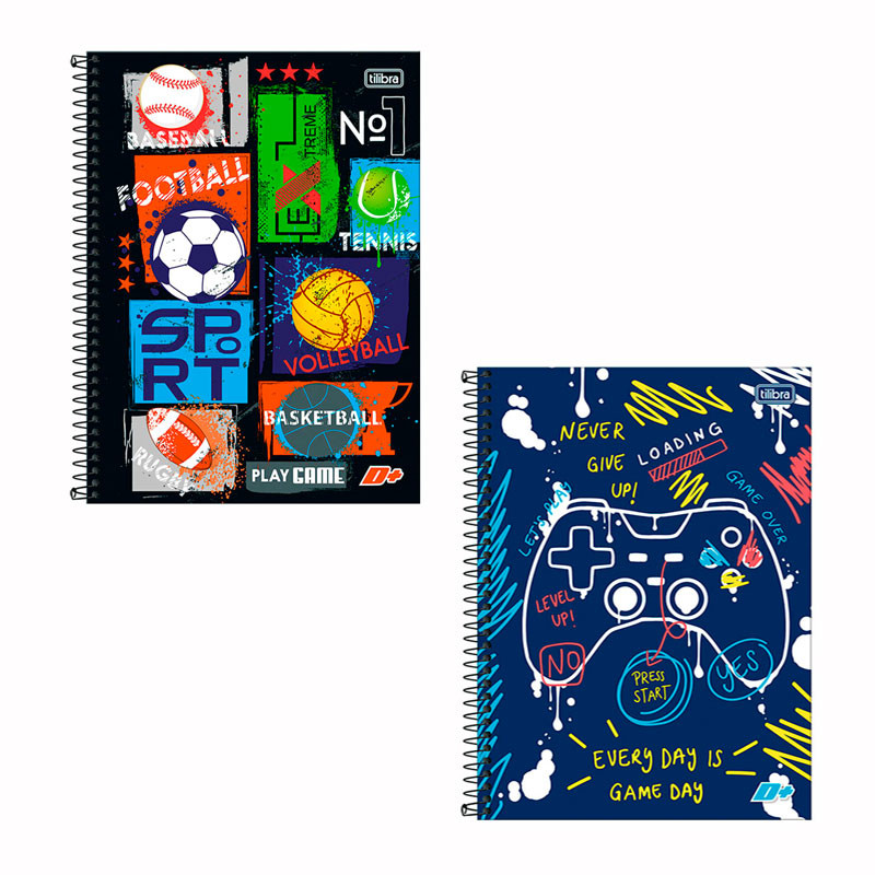 Caderno espiral capa dura universitário 10x1 200 folhas D Mais Masculino Tilibra