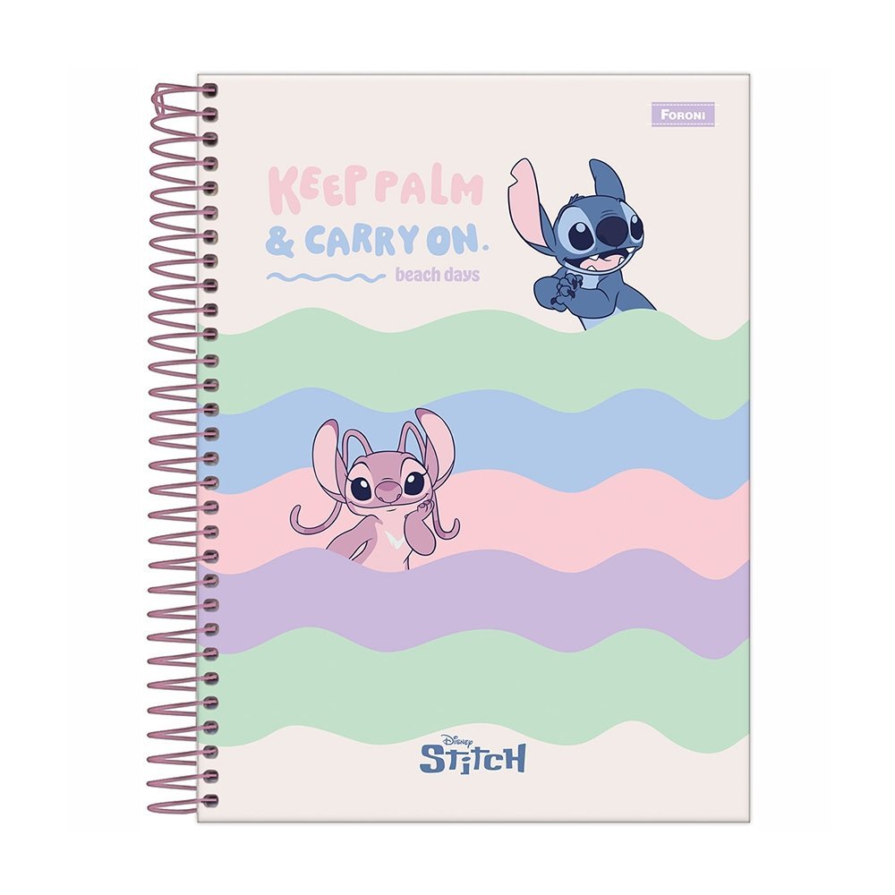 Caderno Espiral Foroni Colegial Capa Dura - Stitch 10 Matérias 160 Folhas - Embalagem com 4 Unidades (SORTIDO)