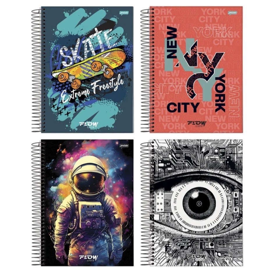 Caderno Espiral Jandaia Universitário Capa Dura Flow 1 Matéria 80 Folhas - Embalagem com 4 Unidades