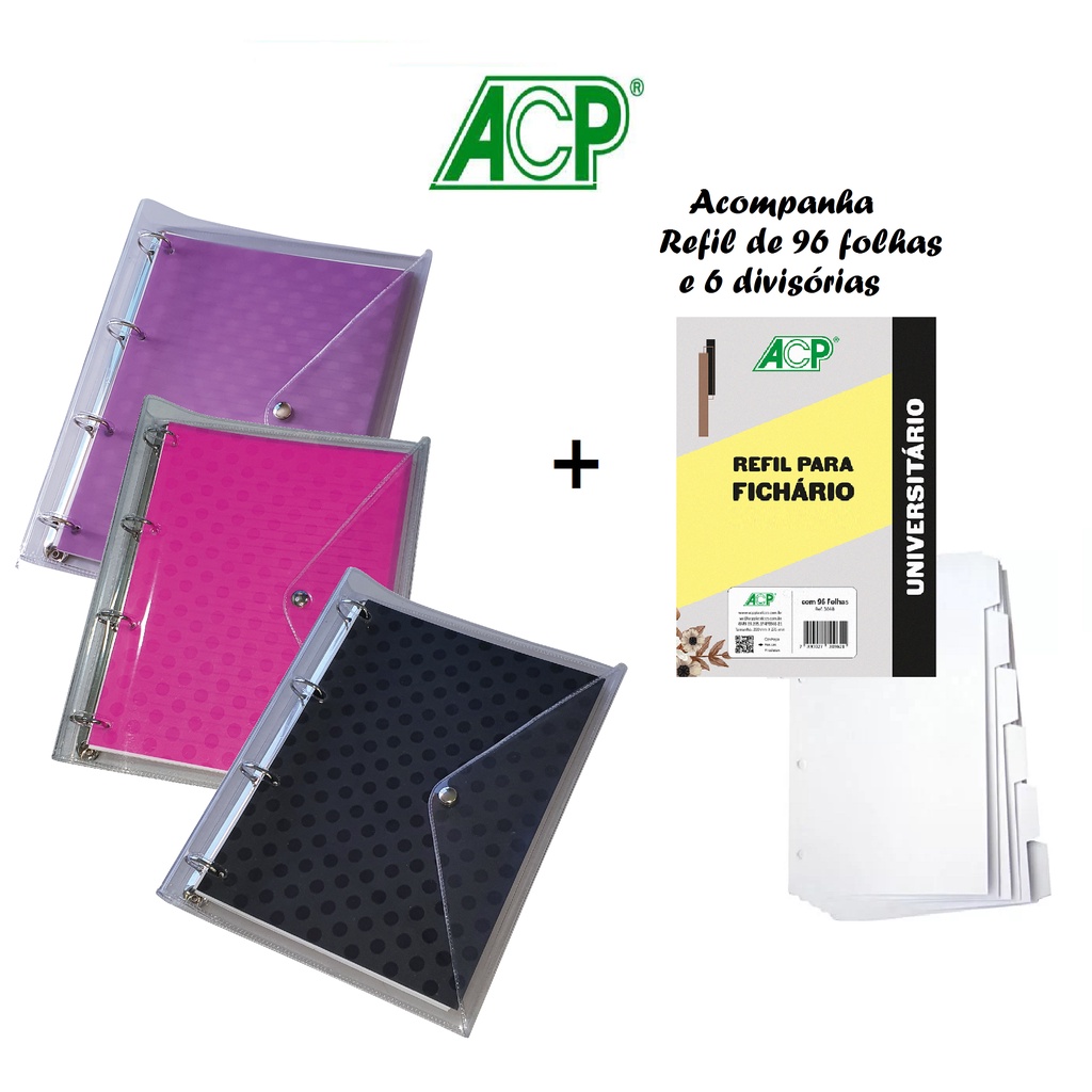 Caderno Fichário Argolado Univ. PVC Poá 96 Fls + 6 Div