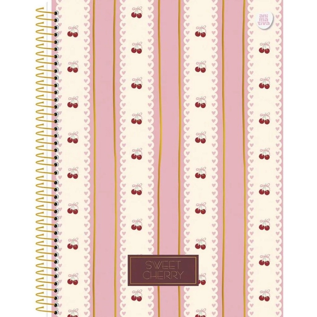 Caderno Grande Universitário Sweet Cherry Cereja Capa Dura 10 Matérias Animativa
