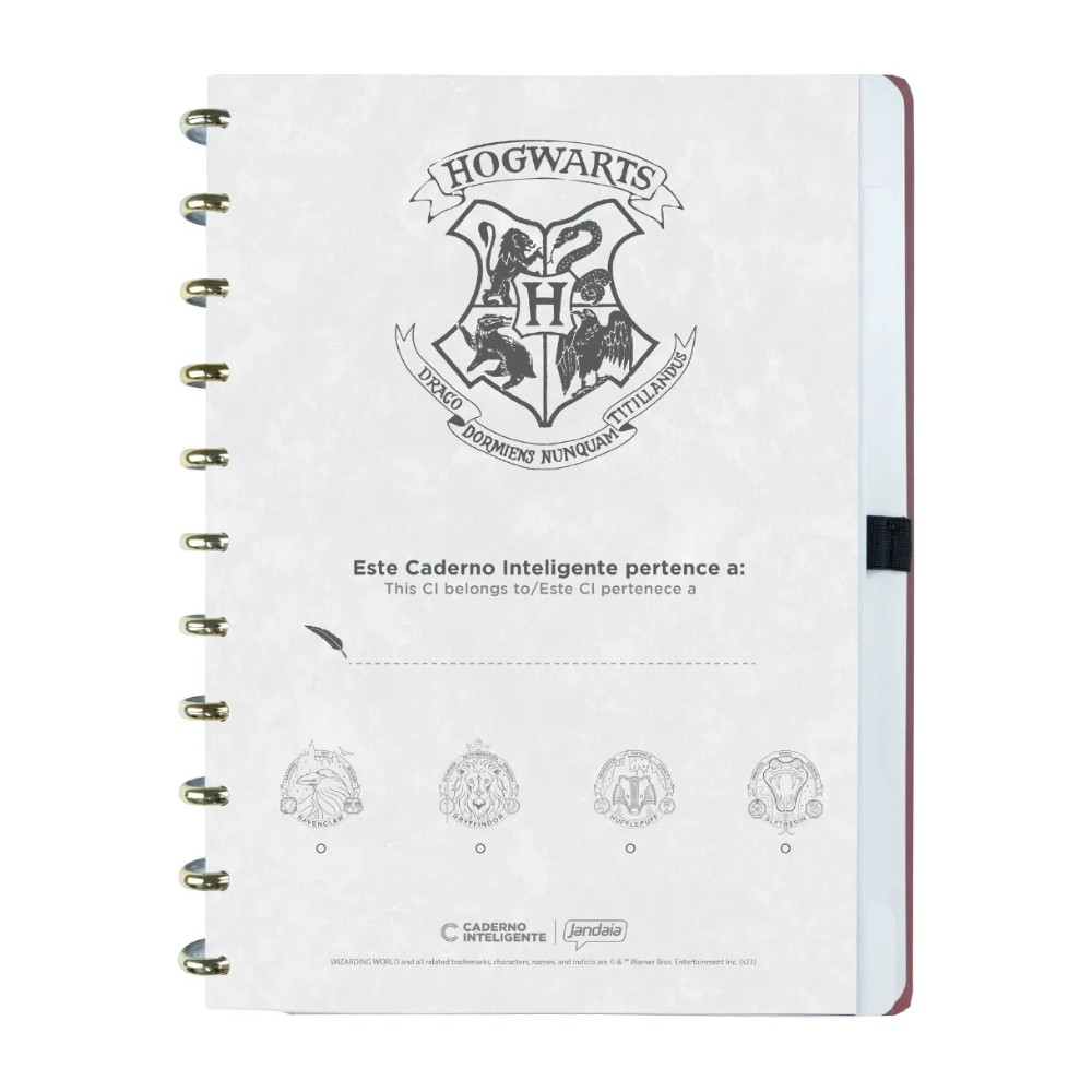 Caderno Inteligente Harry Potter Chapéu Seletor Grande Caderno universitário premium inspirado no icônico Chapéu Seletor de Hogwarts. Possui acabamento elegante que imita couro marrom, detalhes em hot stamping dourado e o sistema de discos inteligentes que permite retirar, colocar e reposicionar as folhas livremente, adaptando-se a qualquer necessidade de estudo ou planejamento. Diferenciais: Design Oficial e Licenciado: Desenvolvido em parceria com a marca Jandaia, garantindo autenticidade e detalhes fiéis ao universo Wizarding World. Acabamento Premium: Capa e contracapa rígidas com textura tipo couro ecológico e aplicação de brilho dourado (hot stamping). Discos Estilizados: Acompanha discos metalizados que complementam a estética luxuosa do caderno. Dicas de Uso: Manuseio das Folhas: Para não danificar o papel, sempre retire as folhas puxando-as individualmente de cima para baixo, rente aos discos. Personalização: Utilize a bolsa plástica inclusa para guardar mapas de Hogwarts, cartas ou documentos importantes. Ficha Técnica: Marca: Caderno Inteligente Coleção: Harry Potter Tamanho: Grande (Universitário) - 215 mm x 280 mm. Capa/Contracapa: Rígidas com acabamento em couro ecológico marrom e detalhes dourados. Quantidade de Folhas: 80 folhas (60 pautadas temáticas e 20 lisas brancas para impressão). Gramatura: 90 g/m². Discos: 11 discos tamanho M (suportam até 80 folhas de 90g ou 60 de 120g). Itens Inclusos: 01 Folha de adesivos temáticos; 01 Bolsa plástica transparente; 01 Folha de identificação com calendário; 04 Divisórias com abas (2 pretas e 2 transparentes); 01 Suporte com elástico para caneta ou lápis.