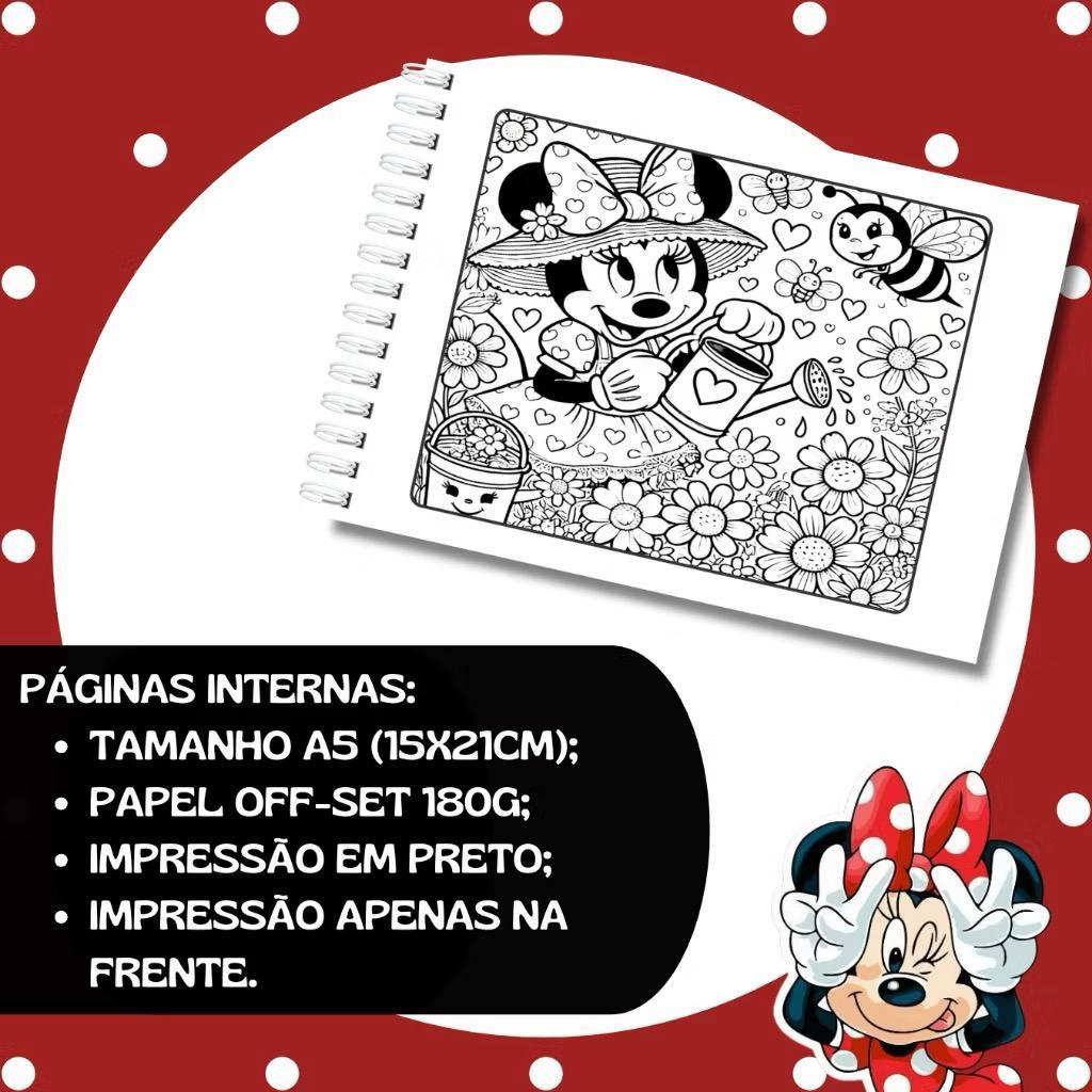 Caderno Livro de Colorir Minnie/Mickey Mouse 50 Folhas grossas 180g Capa Dura Envio imediato