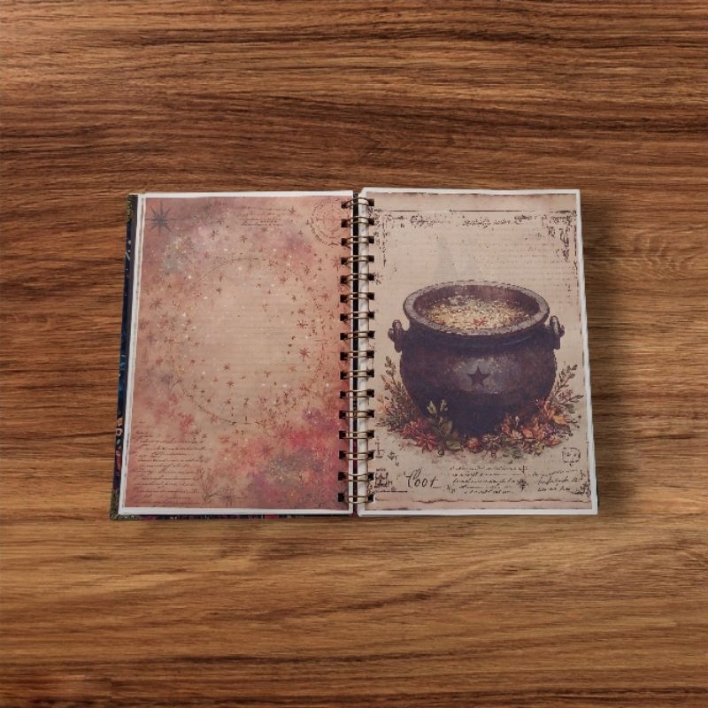 📚 Descrição do Produto: Transforme suas anotações em um ritual mágico! Este Caderno A5 com capa ilustrada de três bruxas sob a lua cheia é perfeito para quem ama o universo místico e criativo. Ideal para grimórios, bullet journal, diários e estudos esotéricos. 💫 Características: ✔ Tamanho: A5 (14,8 x 21 cm) ✔ Encadernação: Wire-O dourado resistente ✔ Capa: Ilustração artística + canto dourado decorativo ✔ Folhas: Pautado – perfeito para escrever -90 folhas - 180 páginas ✔ Estilo: Místico, boho, esotérico, mágico 🎁 Uso sugerido: Diário pessoal ✍ Registro de sonhos 🌌 Anotações mágicas 🔮 Presente criativo 🎀