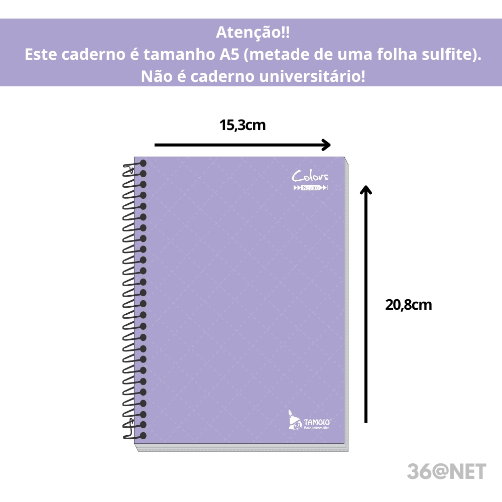 CADERNO CAPA DURA ESPIRAL 96 FOLHAS – FORMATO A5 (PEQUENO) PREÇO UNITÁRIO – VERIFIQUE O TAMANHO ANTES DA COMPRA! MEDIDAS: 20,8 cm x 15,3 cm (Equivale aproximadamente à metade de uma folha sulfite A4. Não é caderno universitário – é um modelo pequeno e compacto.) O Caderno Tamoio A5 Capa Dura 96 folhas é perfeito para quem adora manter tudo organizado sem abrir mão da praticidade. Seu formato compacto (20,8 x 15,3 cm) é ideal para levar na bolsa, mochila ou deixar na mesa de estudos. Use para anotações rápidas, ideias do dia, planejamentos, listas, lembretes, estudos ou trabalho, sempre com muito charme e funcionalidade! Com folhas pautadas de ótima qualidade, capa dura laminada e design em tons pastéis e preto, ele é o companheiro ideal para o dia a dia. -Capa dura laminada, resistente e durável -Ideal para anotações rápidas, listas, agendas, estudos e uso diário -Contém 96 folhas pautadas -Papel com gramatura 56 g/m² -Formato A5 – prático para levar em bolsas ou mochilas pequenas -Cores disponíveis: Preto, Rosa, Lilás, turquesa e Pêssego -Marca: Tamoio ⚠️ Atenção: As imagens são ilustrativas. O produto possui formato reduzido (A5), não sendo o tamanho universitário padrão (grande). Confira as medidas antes de finalizar a compra. ⚠️ Ficou com dúvidas? Envie sua pergunta no chat, que responderemos o mais rápido possível!