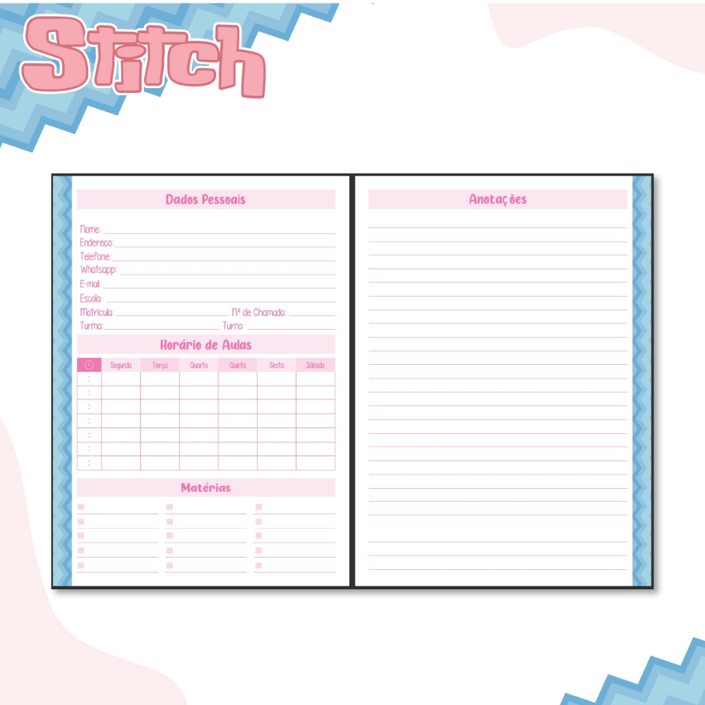 Caderno Personalizado Escolar Universitário Stitch Espiral Capa Dura 1 Matéria 96 Folhas