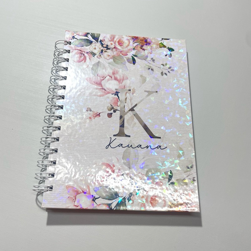 Caderno Personalizado Floral com Nome | Capa Fosca ou Holográfica | 200 ou 400 Págs | Miolo Decorado