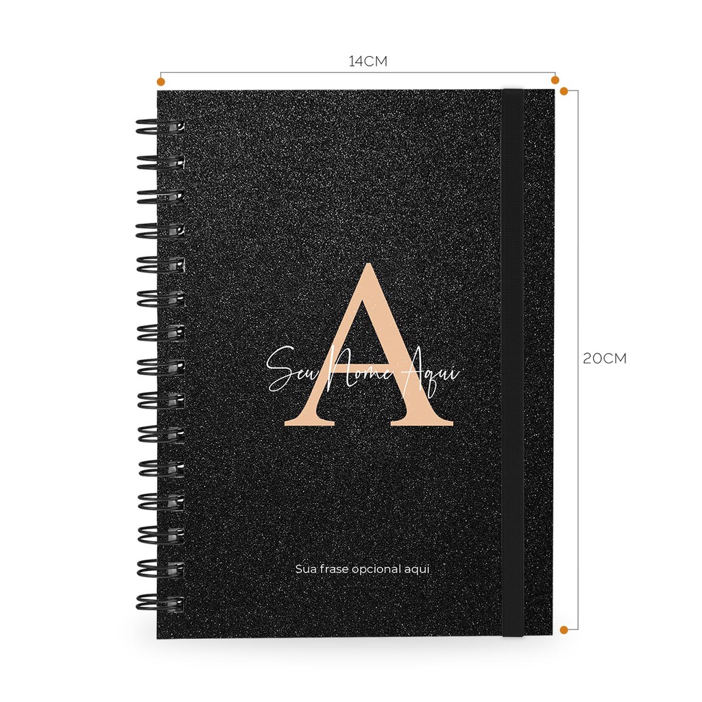 Caderno Personalizado Plus Glitter Preto Nude 14x20 Cm 100 Folhas