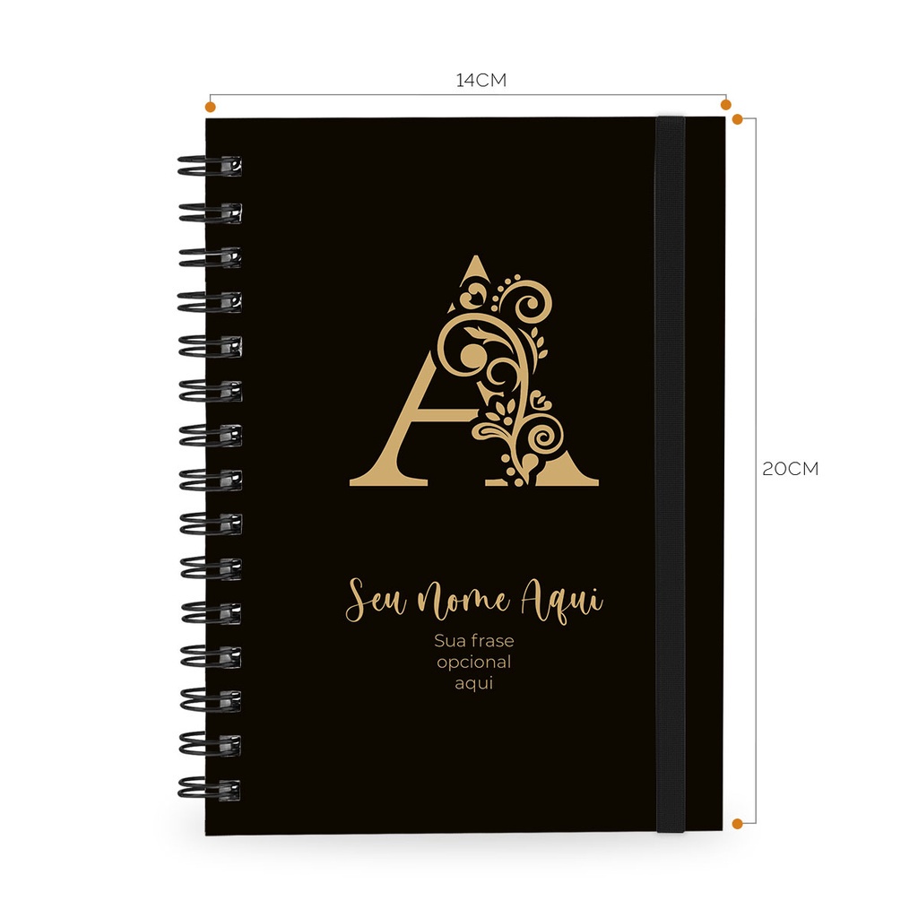 Caderno Personalizado Plus Letra Arabesco Ouro 100 Folhas 14x20 cm