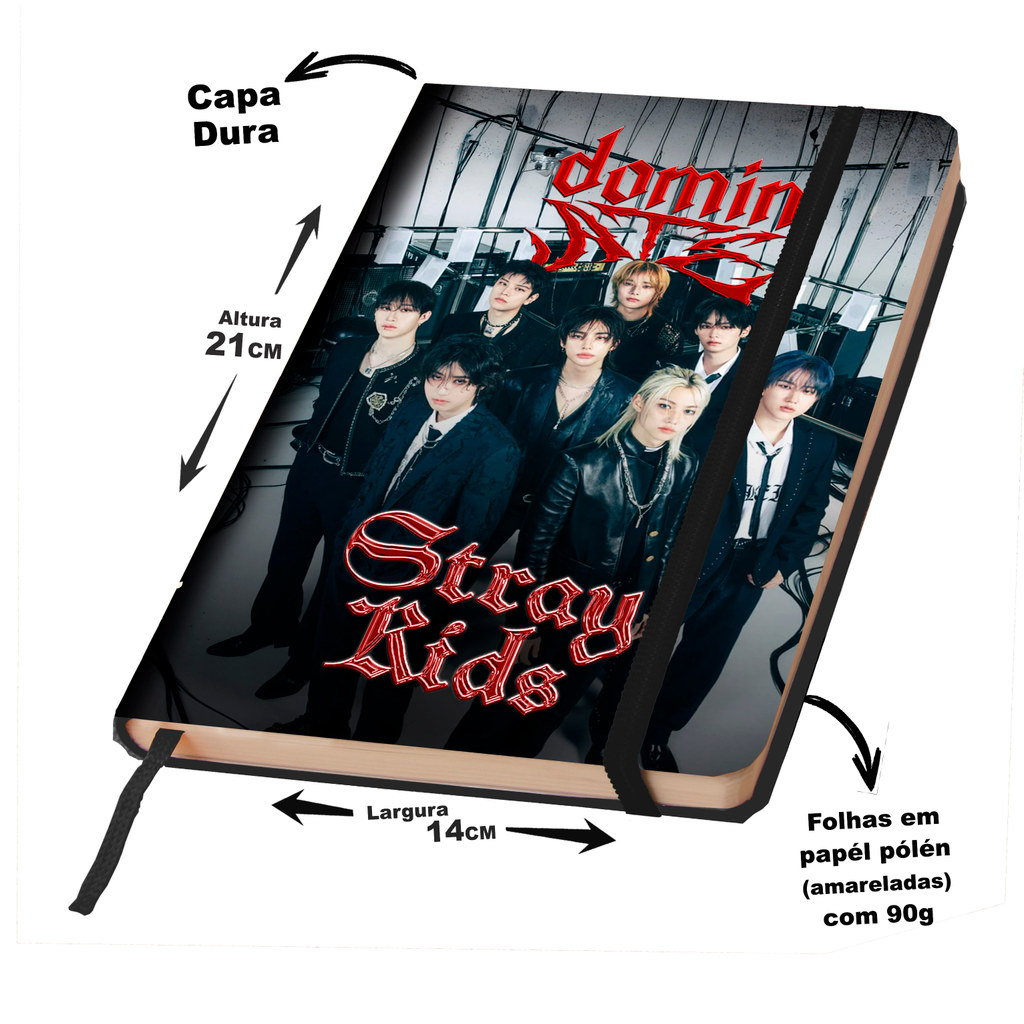 Caderno Sketckbook STRAY KIDS MÚSICAS capa dura 160 páginas